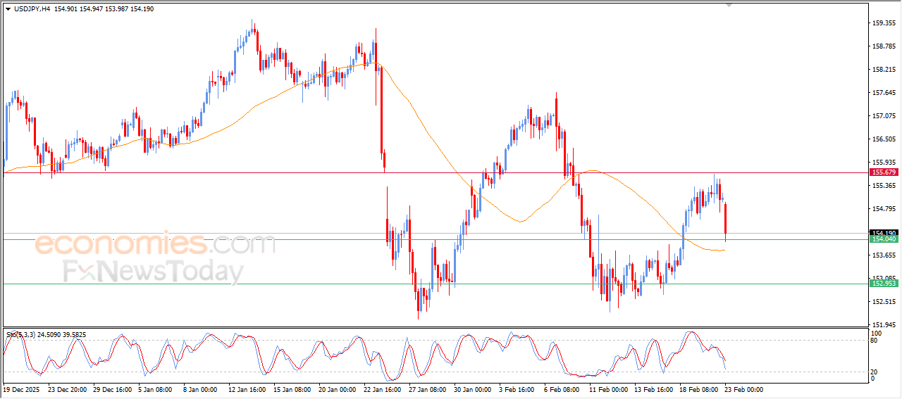 The (USDJPY) witnessed sharp losses in its last intraday trading, after reaching our expected target in our previous analysis at 155.65 resistance, to decline with the emergence of negative signals from relative strength indicators, after reaching overbought levels, leaning on the key support at 154.00, which is considered as key support that will detect the upcoming trend on the intraday basis.