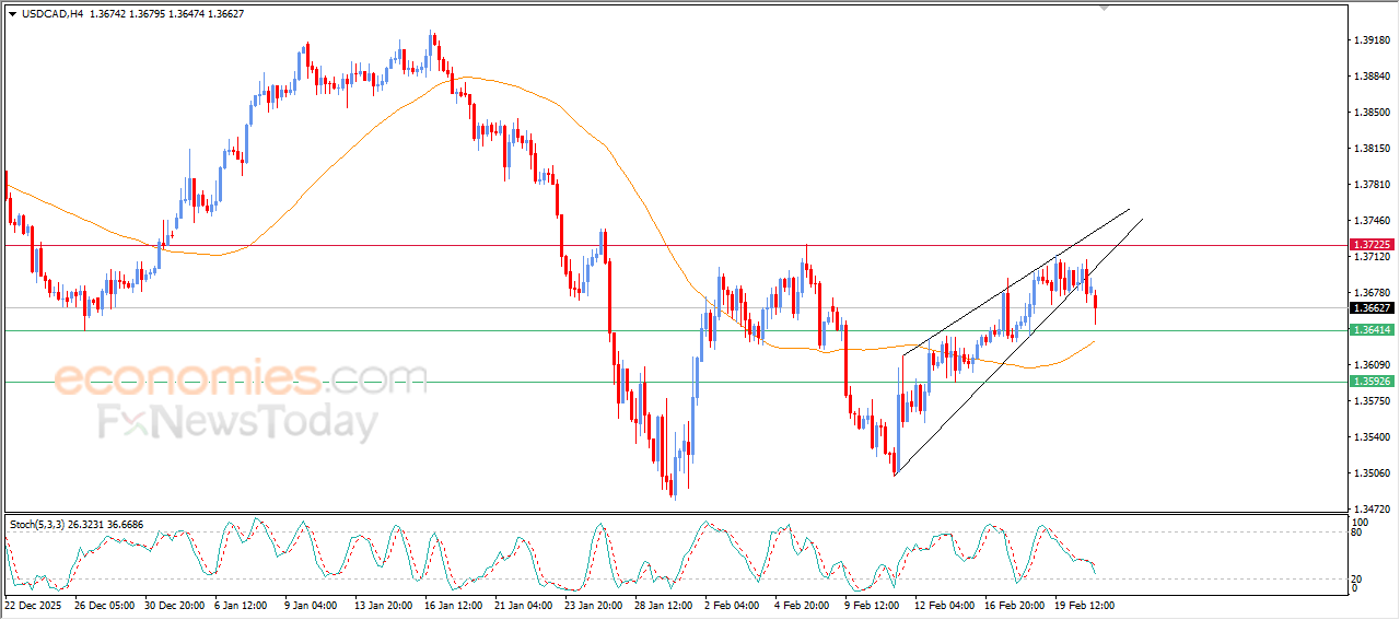 The (USDCAD) price declined in its last intraday trading, amid the emergence of negative signals from relative strength indicators, after reaching overbought levels, to break the support level of short-term negative technical formation, which is represented by the rising wedge pattern, on the other hand, the dynamic support that is represented by the trading above EMA50 represents a key support against extending the losses in the upcoming period.