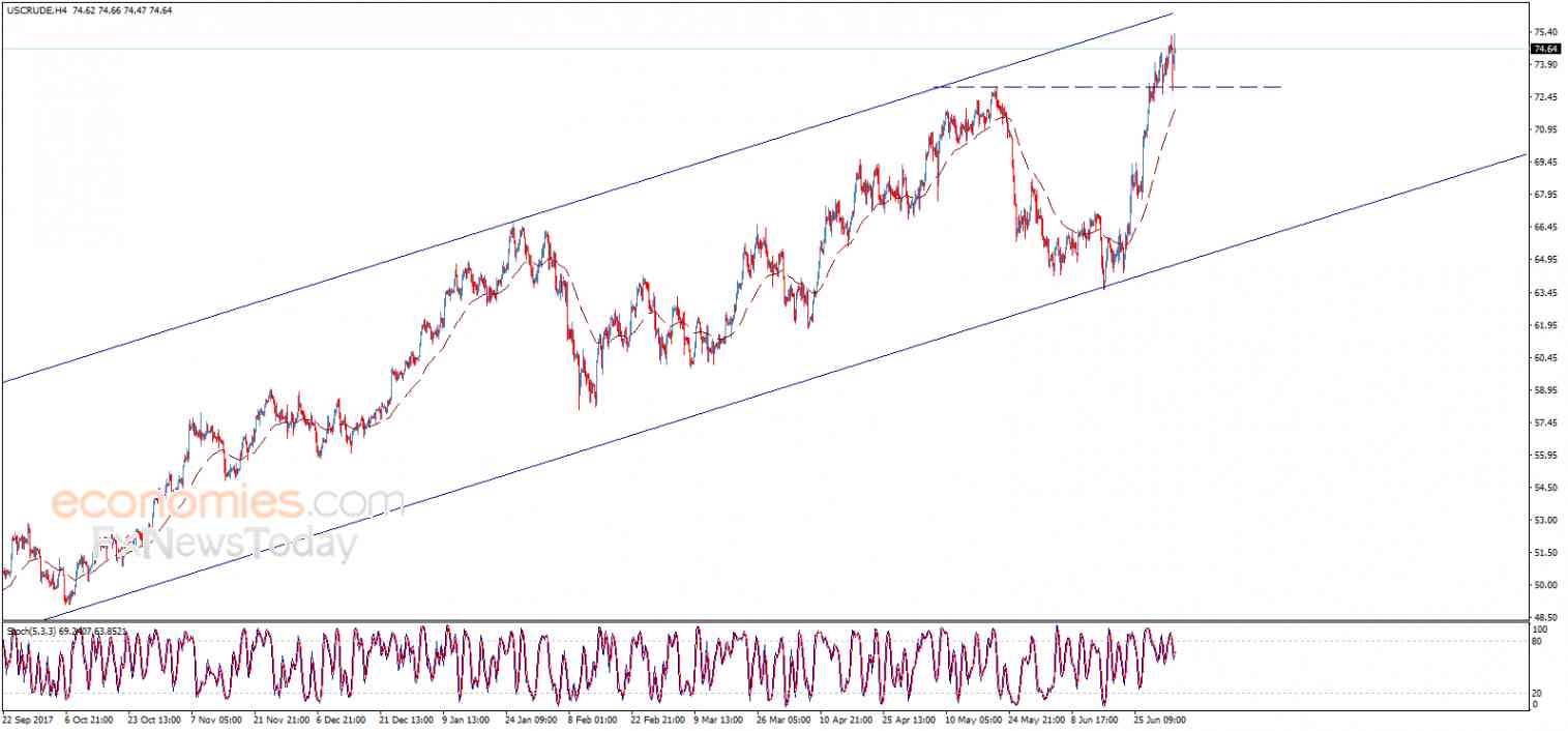Expected trading range for today is between 73.50 support and 76.35 resistance.