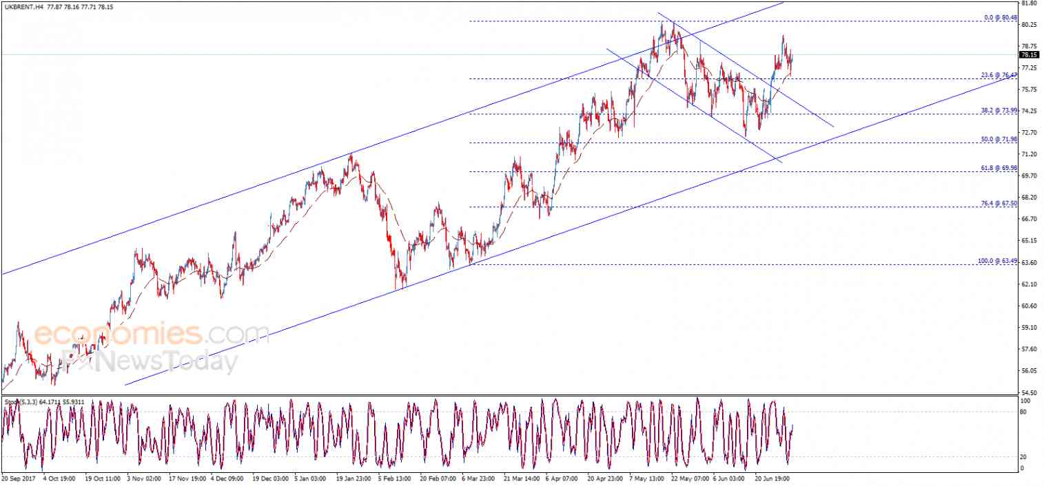 Brent oil price tested the key support 76.47 yesterday and bounced bullishly to settle above 78.00 barrier now, which supports the continuation of the bullish trend scenario on the intraday and short term basis, organized inside the bullish channel that appears on the chart, waiting to visit 80.48 level that represents our next main target.