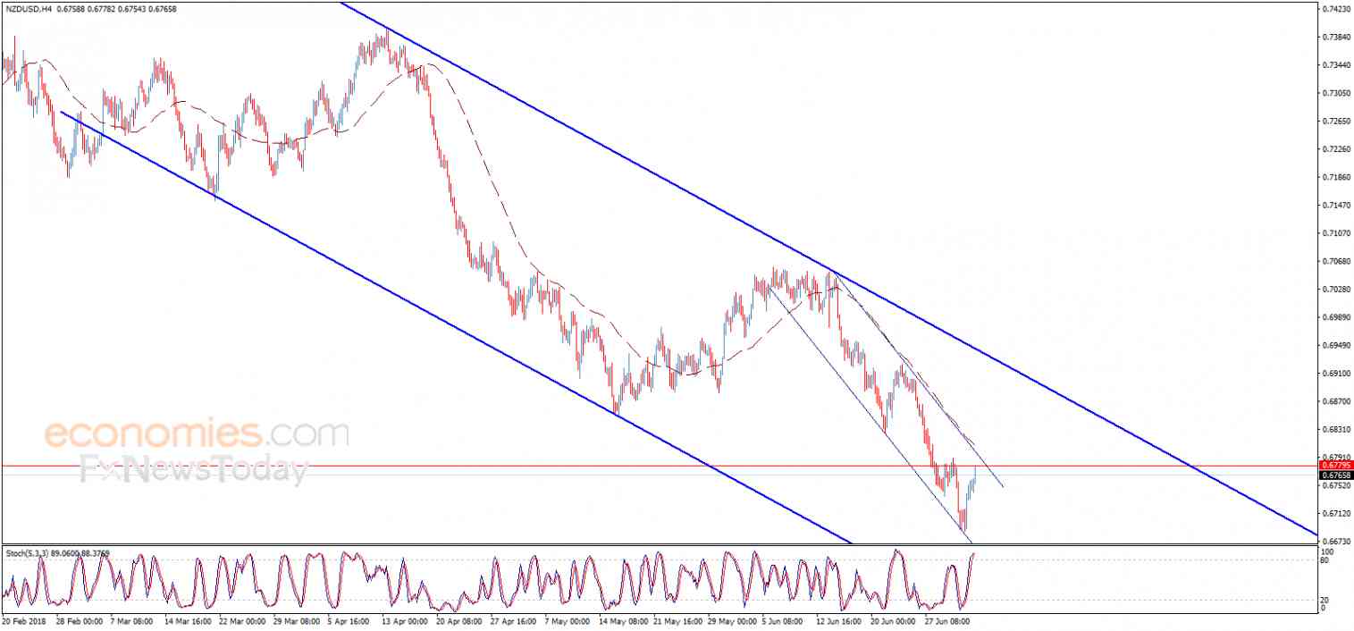 The NZDUSD pair begins today’s trading with clear positivity to test 0.6779 level, and as long as the price is below this level, the negative scenario will remain active for the upcoming period, supported by stochastic loss to the positive momentum clearly, besides the negative pressure formed by the EMA50, reminding you that our main waited target is located at 0.6673.