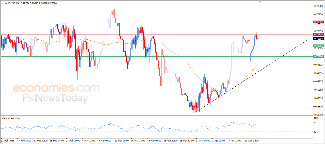The AUDUSD pair declined during its latest intraday trading following the firm resistance at the key level of 0.7090, which had been a projected price target in our previous analyses. The pair is currently undergoing a profit-taking phase after its recent gains, while attempting to regain positive momentum that could help it breach this resistance, amid the dominance of the bullish corrective trend on short-term basis, with continued positive pressure as the price remains above EMA50, reinforcing the stability of this bullish path.