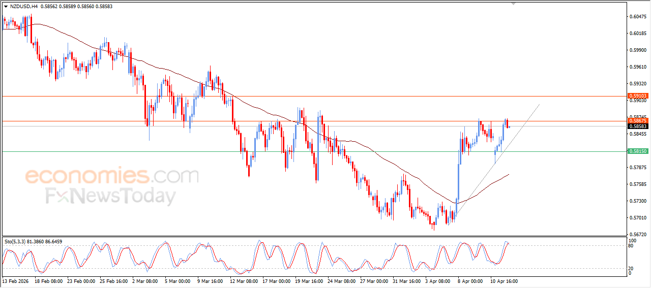 The NZDUSD pair declined during its latest intraday trading following the firm resistance at the key level of 0.5865, which had been a projected target in our previous analyses. This pullback reflects a phase of profit-taking after recent gains, as the pair also attempts to reduce its clearly overbought condition on relative strength indicators, especially with the emergence of negative signals.