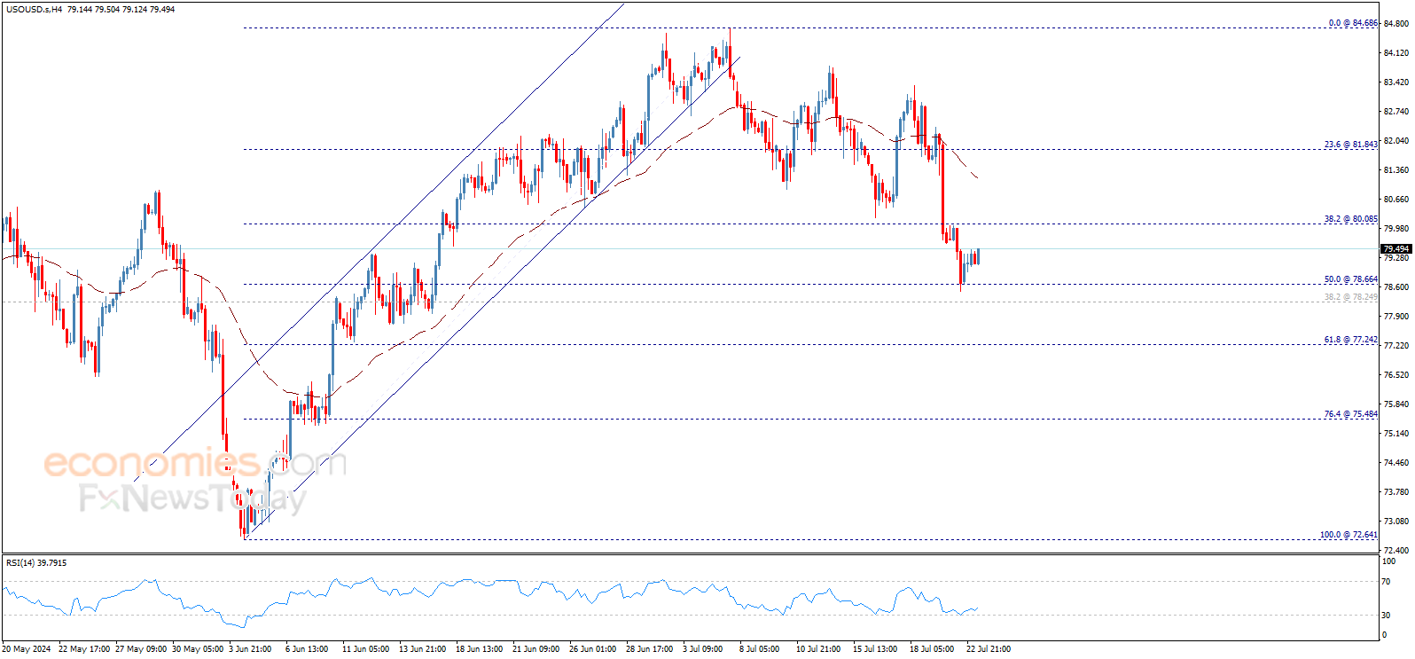 Crude oil price attempts to provide additional positive trades, and as long as the price is below 80.08$, our bearish overview will remain valid for today, waiting to surpass 78.66$ to reinforce the chances of rallying towards our next main target at 77.24$, noting that the EMA50 continues to support the suggested bearish wave.