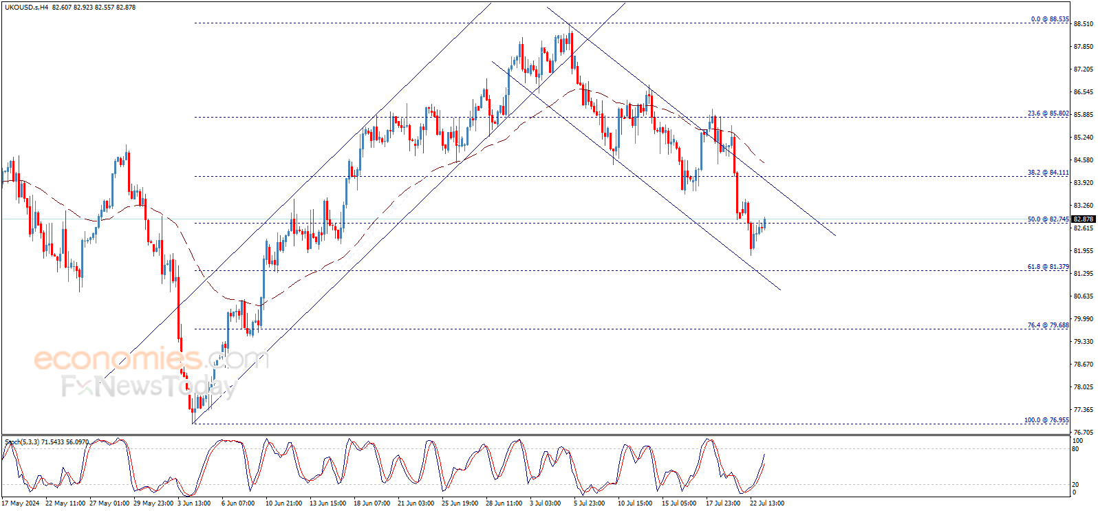 Brent oil price continues to fluctuate at the key resistance 82.74$, while stochastic keeps losing the positive momentum, waiting to motivate the price to resume the expected bearish wave for today, which targets 81.38$ mainly, reminding you that the continuation of the bearish wave depends on the price stability below 82.74$ as a first condition.