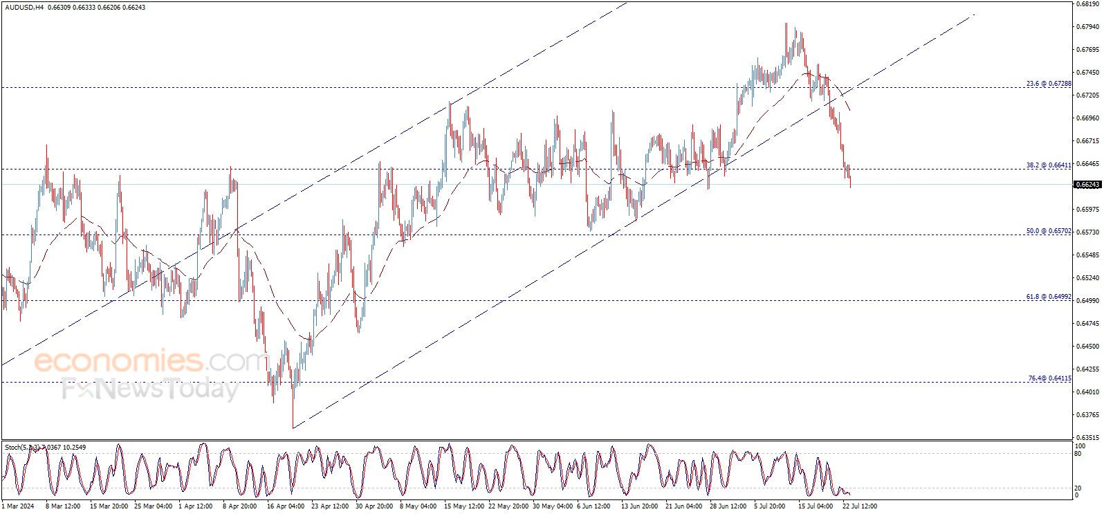 The AUDUSD price achieved initial break to 0.6640$ level and closed the last four hours’ candlestick below it, which supports the continuation of the expected bearish trend for today, opening the way to head towards 0.6570$ as a next main target, noting that holding below 0.6640$ is important to guarantee the continuation of the suggested bearish wave.