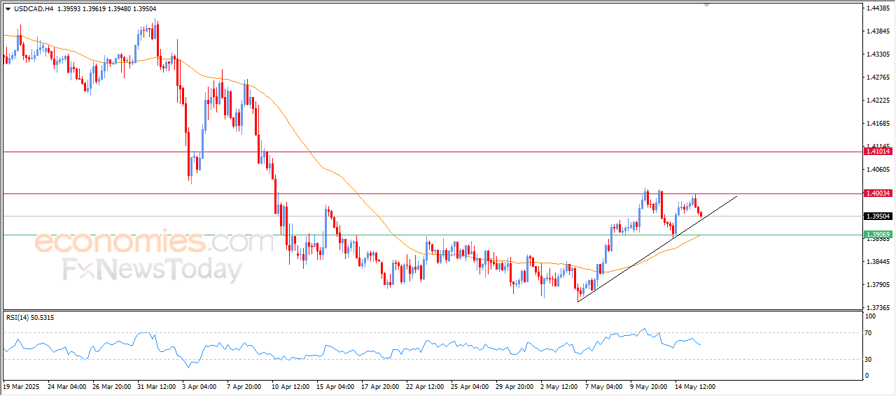 The (USDCAD) declined in its recent intraday trading, affected by the stability of the critical and stubborn resistance level at 1.4000, this decline came with the emergence of the negative signals on the (RSI), amid the pair’s attempts to gain positive momentum that might assist to breach this resistance, to lean on the support of a bullish correctional trend line on the short-term basis, with a positive reinforcement due to its trading above its EMA50.