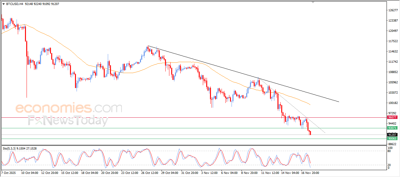 Bitcoin (BTCUSD) continued its decline in its last intraday trading, breaking the support level at $93,000, which represented technical target in our previous analysis, this break reactivated the selling pressure, especially with the continuation of its trading below EMA50, which reinforces the dominance of the negative overview on a short-term basis.