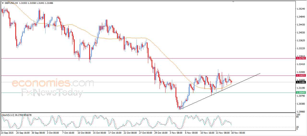 The (GBPUSD) price declined in its last intraday trading, due to the stability of the resistance at 1.3185, which represents a barrier against extending the current corrective bullish wave, this decline came with the attempt of gaining bullish momentum that might allow it breach this resistance, leaning on the support of its EMA50, taking advantage of its trading alongside supportive trendline for this bullish trend.