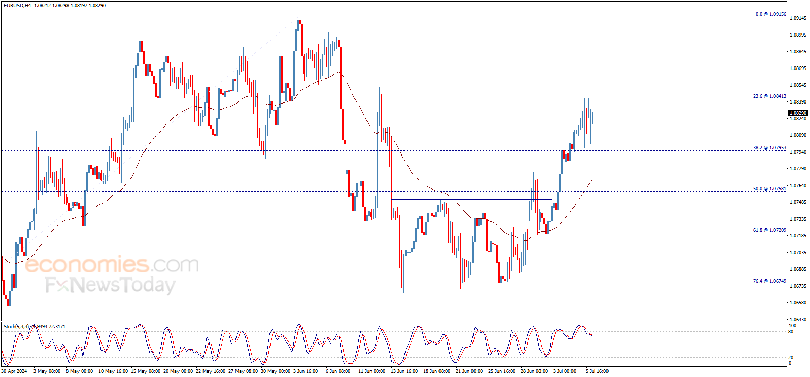 - The EURUSD price succeeded to achieve our waited target at 1.0840$ by the end of last Friday, noticing that the price opened today with bearish gap that it covers it now, to hint heading to achieve more expected rise in the upcoming sessions, waiting to breach the mentioned level to open the way to head towards 1.0915$ as a next main target.