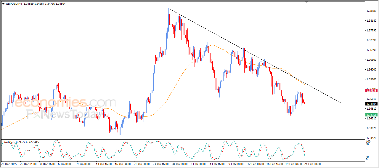 GBPUSD declined in its last intraday trading, amid the emergence of the negative signals from relative strength indicators after reaching overbought levels, with the continuation of the negative pressure due to its trading below EMA50, reinforcing the strength and stability of the bearish corrective trend on short-term basis, especially with its trading alongside supportive trend line for this negative track.