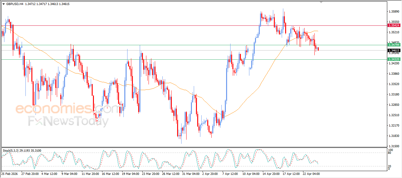 The GBPUSD price continued to decline during recent intraday trading, confirming the break below the key support level at 1.3480. This comes amid a short-term bearish corrective wave, with ongoing negative pressure as the pair continues to trade below EMA50, which intensifies the downside pressure surrounding the pair. This is further supported by continued negative signals from the relative strength indicators, increasing the likelihood of deeper losses in the near term.