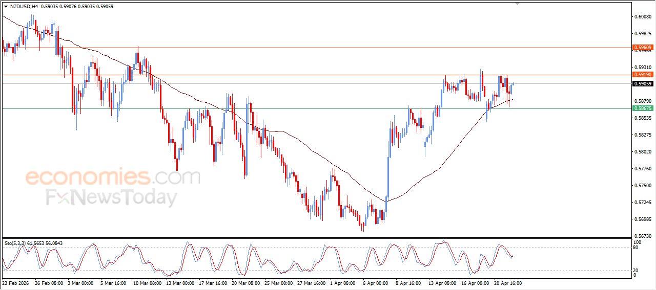 The NZDUSD pair rose in its recent intraday trading, preparing to challenge the key resistance level at 0.5920, supported by continued trading above EMA50, which reinforces the short-term corrective bullish trend.
