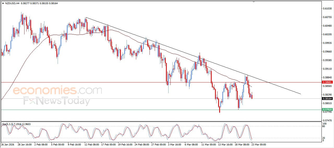 The NZDUSD pair declined in its recent intraday trading, amid the continuation of the negative pressure that comes from its trading below EMA50, reinforcing the stability and dominance of the main bearish trend on short-term basis, especially with its trading alongside supportive trend line for this path.