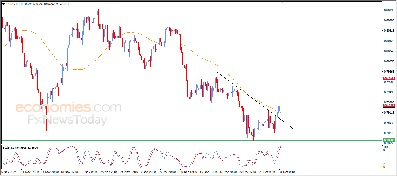 The (USDCHF) price kept rising in its last intraday trading, taking advantage of surpassing the resistance of EMA50, surpassing its negative pressure, attacking 0.7925 key resistance in its last trading, amid the dominance of bullish corrective wave on the short-term basis, with the emergence of the positive signals on the relative strength indicators, despite reaching overbought levels, which reduce the upcoming gains of the pair.