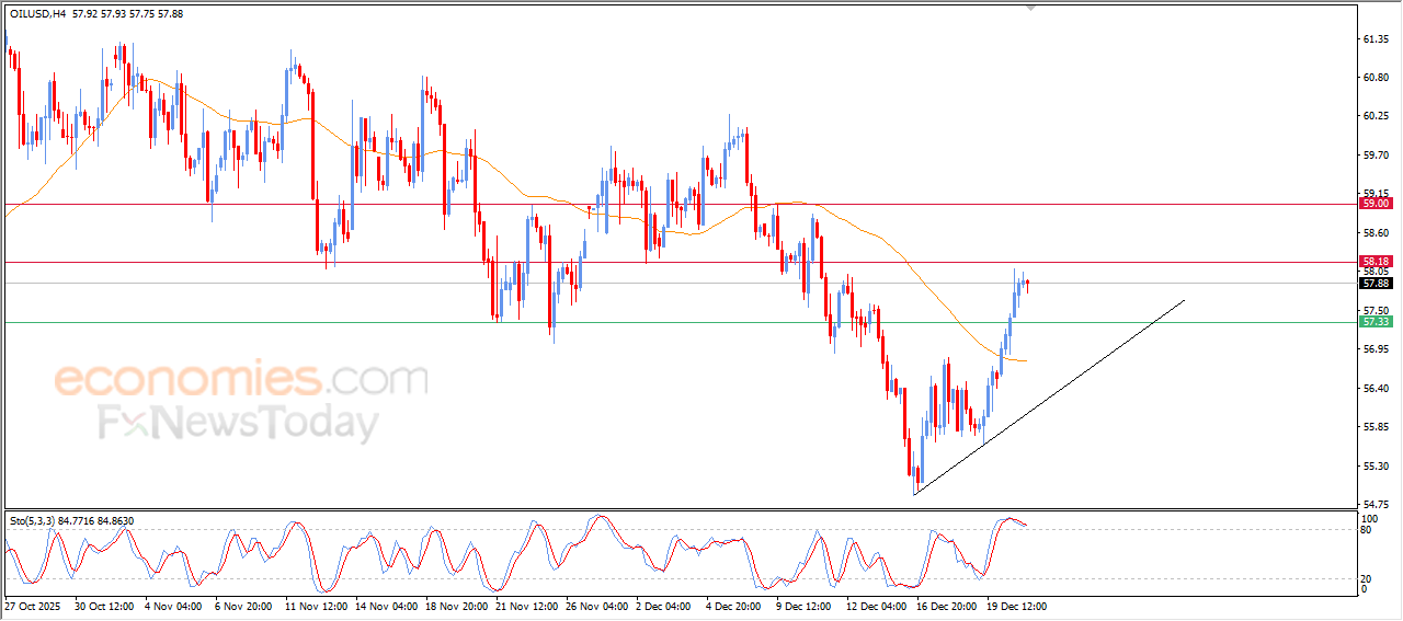 The (AUDUSD) price kept rising in its last intraday trading, after surpassing the negative pressure of EMA50 and taking advantage of its dynamic support, amid the dominance of the main bullish trend on the short-term basis and its trading alongside supportive trend lien, besides the emergence of positive signals on the relative strength indicators, despite reaching overbought levels.