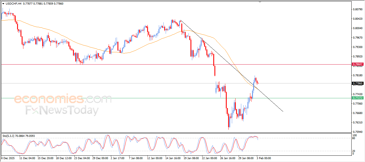 The (USDCHF) price declined in its last intraday trading, to gather the gains of its previous rises, attempting to gain bullish momentum that might help it to recover and rise again, attempting to offload some of its clear overbought conditions on relative strength indicators, especially with the emergence of negative signals from there, affected by breaching minor bearish trend line on short-term basis, taking advantage of its trading above EMA50, forming a dynamic support that reinforces the recovery on the near-term basis.