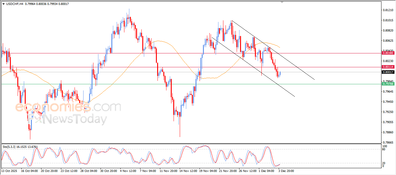 The (USDCHF) price rose in its last intraday trading, amid its moves within minor bearish channel range that limited its previous trading on a short-term basis, and its trading below EMA50 intensifies this pressure. The price attempts to recover some of its previous losses and offload some of its clear oversold conditions on the relative strength indicators, especially with the positive signals that come from them.