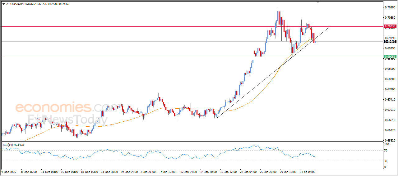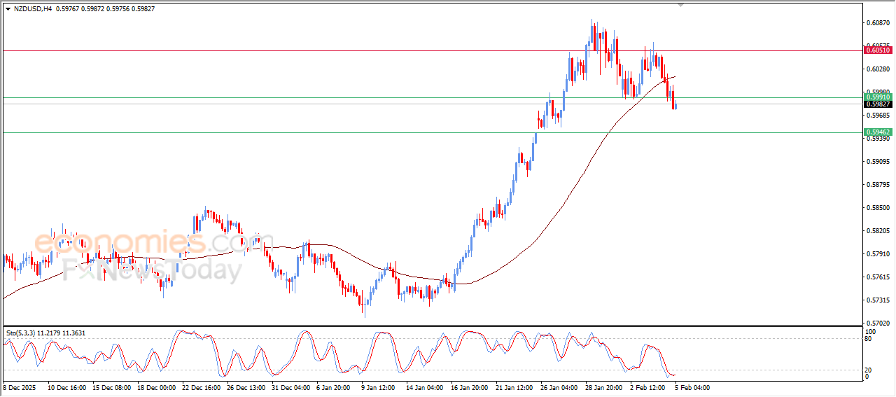 The (NZDUSD) price settles with losses in its last intraday trading, breaking 0.5990 key support, with negative pressure due to its trading below EMA50, which reduces the chances of near-term recovery, amid the dominance of bearish corrective wave on short-term basis, with the emergence of negative signals from relative strength indicators, despite reaching oversold levels.