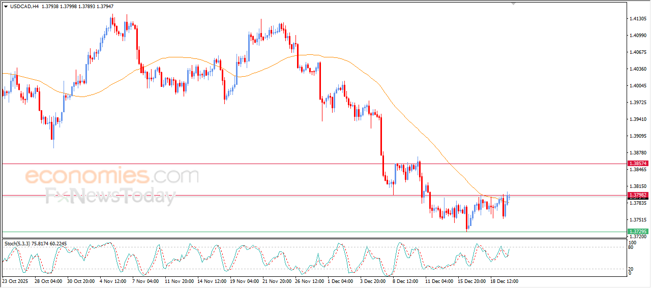 The (USDCAD) price rose in its last intraday trading, surpassing the negative pressure of EMA50, in a key step to recover on the near term basis, supported by the emergence of the positive signals on the relative strength indicators, after offloading its overbought conditions, opening the way for achieving more gains, attacking the key resistance at 1.3800, which represents a key level to detect the upcoming track.