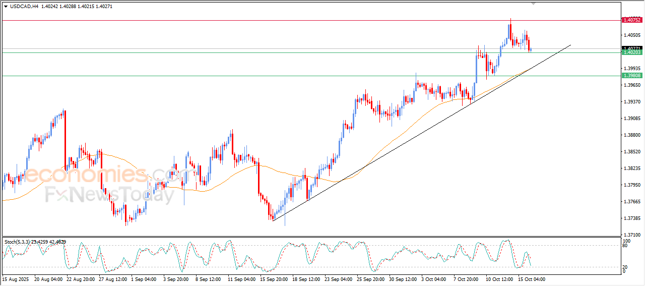 The (USDCAD) price declined in its last intraday trading, amid the dominance of the negative signals on the relative strength indicators, attempting to look for higher low to help it to gain the required bullish momentum to recover and rise again, amid the continuation of the positive pressure due to its trading above EMA50, reinforcing the chances of its recovery on the near-term basis, amid the dominance of the main bullish trend on the short-term basis and its trading alongside trendline.
