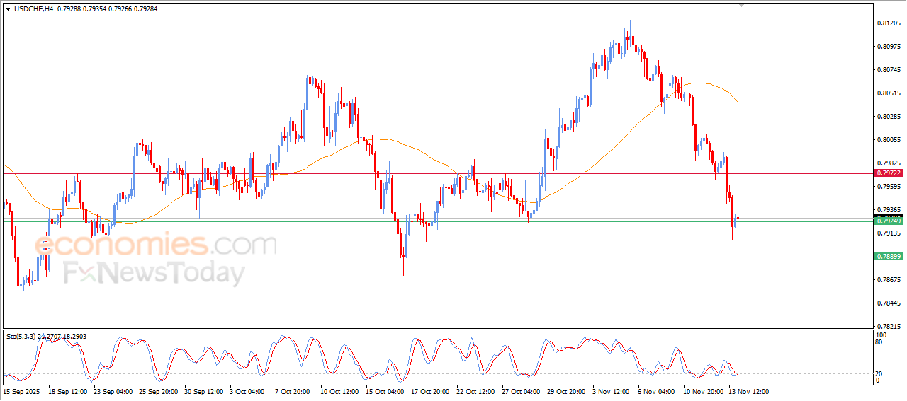 The (USDCHF) price settled with sharp losses in its last intraday trading, amid the dominance of bearish corrective wave on the short-term basis, leaning on the key support at 0.7925 which represents our expected target in our previous analysis, accompanied by the emergence of negative signals on the relative strength indicators, despite reaching oversold levels.