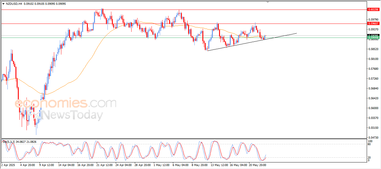 The (NZDUSD) price rose in its last intraday trading, due to its lean on the support level at 0.5900, accompanied by its leaning on a minor bullish bias line on the short-term basis, which increased the positive momentum of the price to begin forming a positive divergence on the (RSI), after reaching oversold levels, exaggeratedly compared by the price movement.