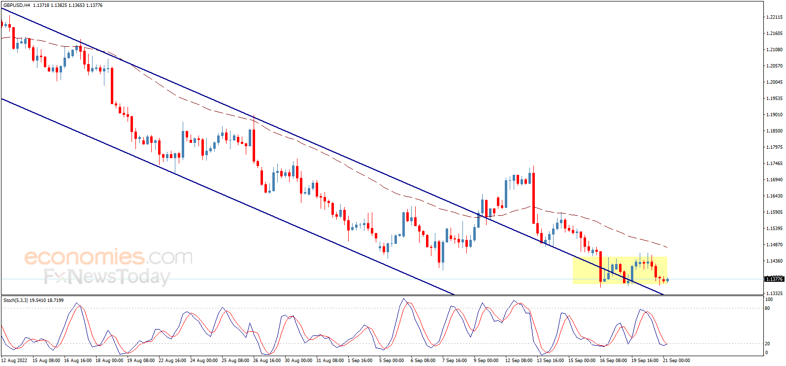The GBPUSD pair bounced downwards clearly yesterday to reach 1.1360 areas, reinforcing the expectations of continuing the bearish trend for the upcoming period, supported by the negative pressure formed by the EMA50, waiting to visit 1.1300 that represents our next main target.