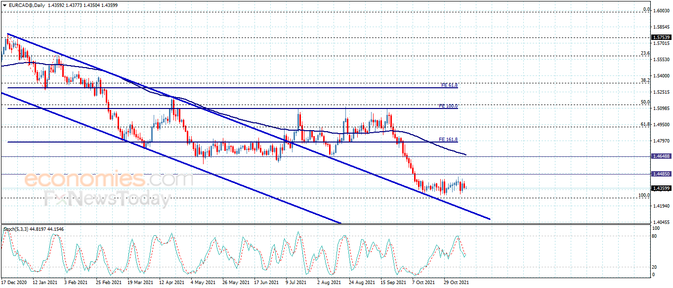 The EURCAD pair lost its positive momentum by stochastic decline below 50 level, to force it to fluctuate below 1.4485 barrier and hinder the attempt to regain the bullish bias again.