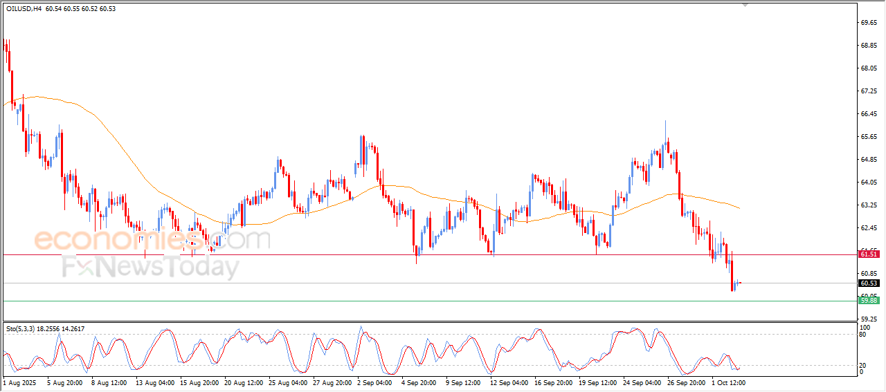 Crude oil prices rose slightly in their recent intraday trading, attempting to recover part of their previous losses, supported by efforts to ease the clear oversold conditions reflected in the Relative Strength Index indicators, especially with the emergence of positive overlapping signals that may provide short-term bullish momentum.