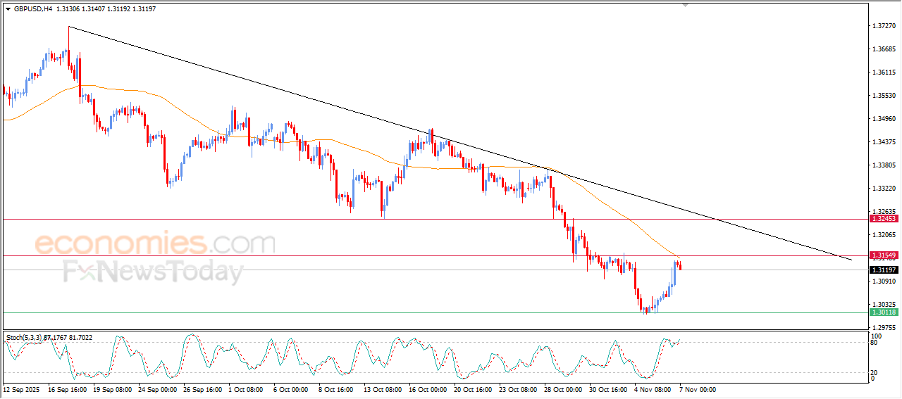 The (GBPUSD) price declined in its last intraday trading, affected by reaching the resistance of its EMA50, which forced it to rebound to the downside after a consecutive gains journey to correct the main bearish trend on the short-term basis, amid its trading alongside supportive trendline for this track, besides the relative strength indicators reaching overbought levels that might intensify the negative pressure.