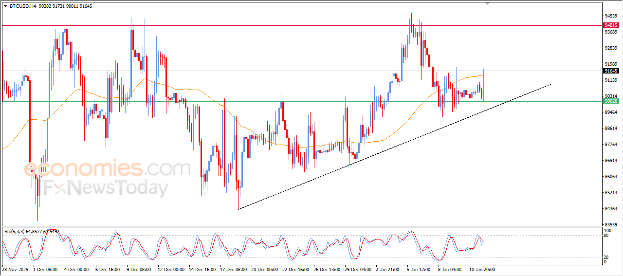 Bitcoin’s price surged higher in its last intraday trading, taking advantage of the stability of the key support level at $90,000, providing clear bullish momentum amid the continuation of the main bullish trend on the short-term basis, with its trading alongside supportive trend line for this trend.
