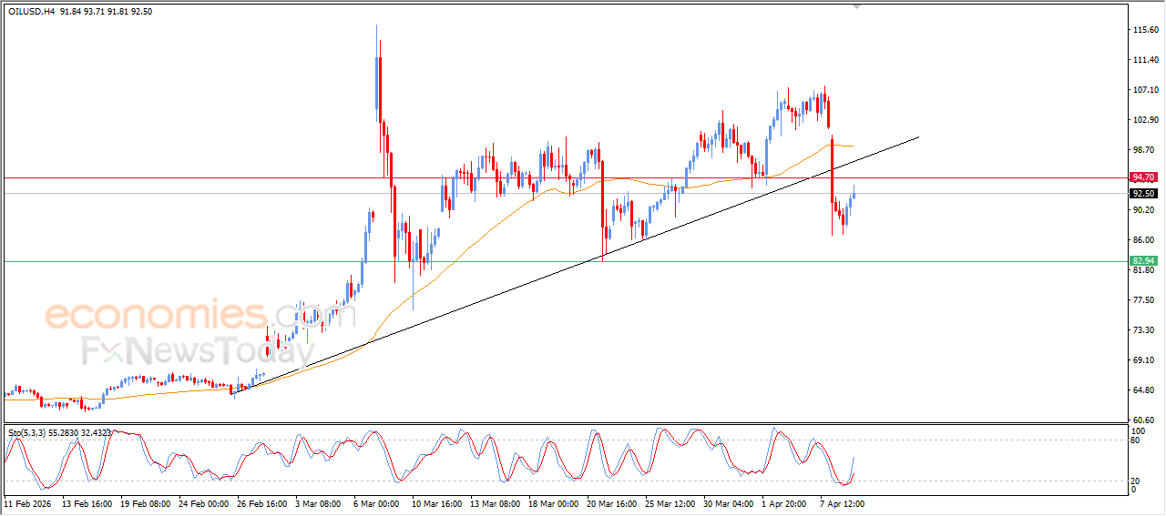Crude oil extended its gains during recent intraday trading, attempting to recover part of its previous losses, supported by relative improvement in momentum as the price tries to ease its oversold condition in relative strength indicators, especially with the emergence of positive signals. This movement reflects the price attempting to catch its breath after recent pressures.