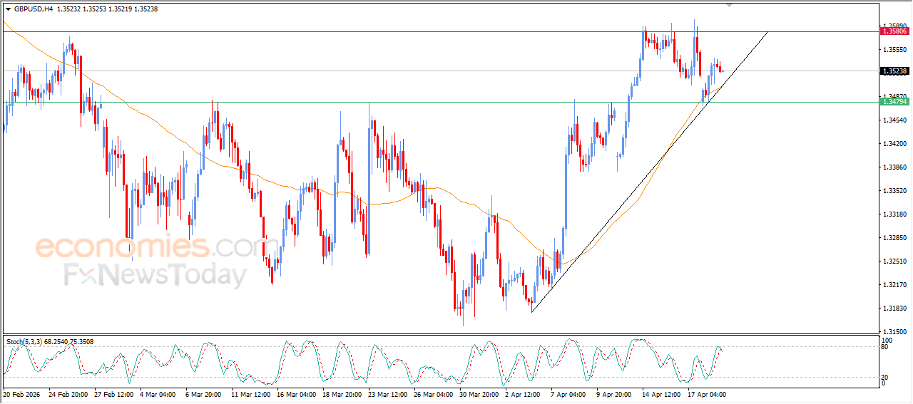 The GBPUSD pair declined slightly during its recent intraday trading, taking profits from its previous gains, attempting to ease its clear overbought condition on the relative strength indicators, especially with the beginning of a negative crossover, signaling a temporary pause to rebuild positive momentum for a potential recovery and renewed rise, with the dominance of the short-term bullish trend, with the price moving alongside a supportive trendline. In addition, the pair continues to trade above EMA50, which provides ongoing positive pressure and enhances the chances of recovery in the near term.