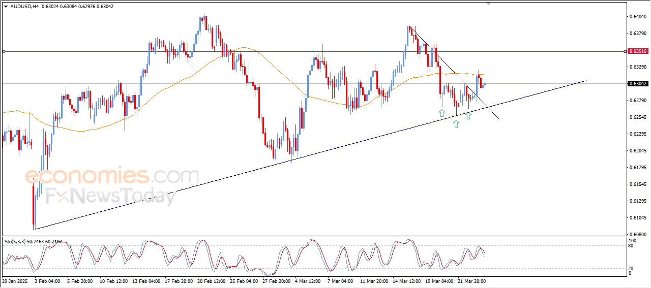 The AUD/USD price inched higher in latest intraday trading amid the dominance of the main upward trend in the short term as the price trades alongside the trend line, while buoyed by piercing a downward correctional trend line, thus tackling the resistance of $0.6305, which represents the neckline of the positive Head and Shoulders pattern that’s contradictory to the downward correctional trend.
