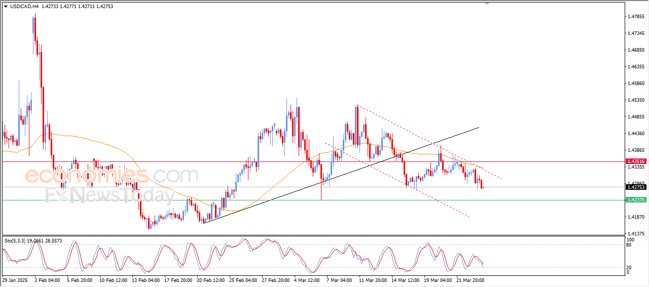 The USD/CAD price fell in latest intraday trading, while trading within a descending secondary price channel in the short term, with negative signals from the Stochastic, coupled with ongoing negative pressure due to trading below the 50-candle SMA.