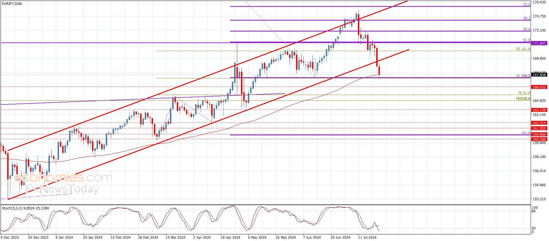 The expected trading range for today is between 169.20 and 167.00