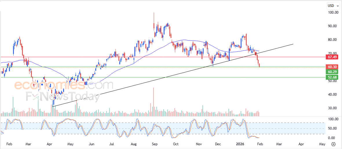 Affirm Holdings, Inc. (AFRM) stock price recorded a continued decline in its latest intraday trading, after being previously affected by breaking below a main short-term upward trend line. This comes alongside ongoing negative pressure from trading below its SMA50, which intensifies the surrounding bearish pressure. However, on the other hand, a positive crossover has begun to appear on the RSI after it reached extremely oversold levels, which could help limit part of the near-term losses.