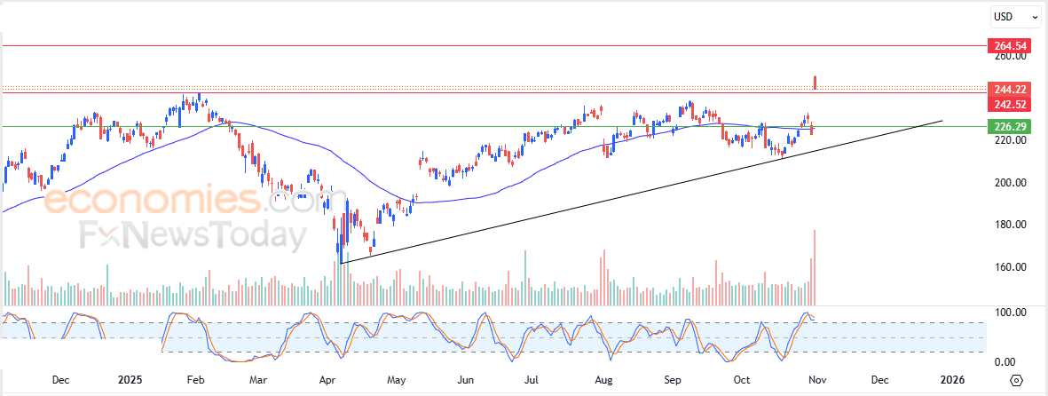 Therefore, we expect the stock to rise in its upcoming trading sessions, especially as long as it remains above $242.50, targeting the next resistance level at $264.55.