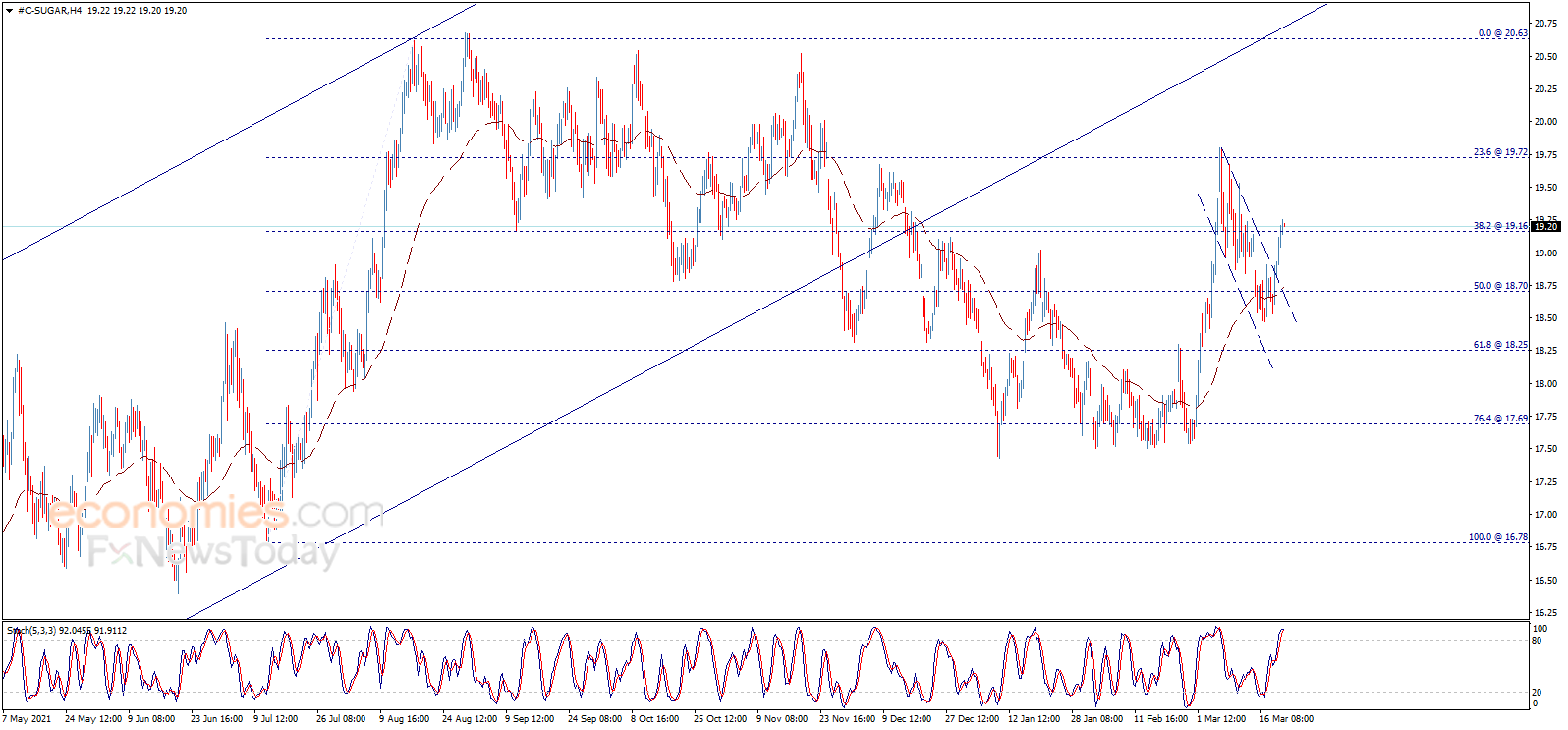 Sugar price settles above 19.16 level, to keep the positive scenario active for today, waiting to get positive momentum that assist to push the price to resume the bullish trend that targets 19.72 level as a next station, reminding you that the continuation of the bullish trend depends on the price stability above 19.16 and 18.70.