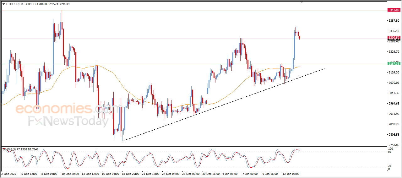 The price of (ETHUSD) declined in its last intraday trading, witnessing natural profit-taking phase with attempts to offload some of its clear overbought conditions on the relative strength indicators, especially with the emergence of the negative signals from there, to help it gain bullish momentum that keeps the main bullish trend on the short-term basis, amid its trading above EMA50, reinforcing the chances of the price recovery on the near-term basis.