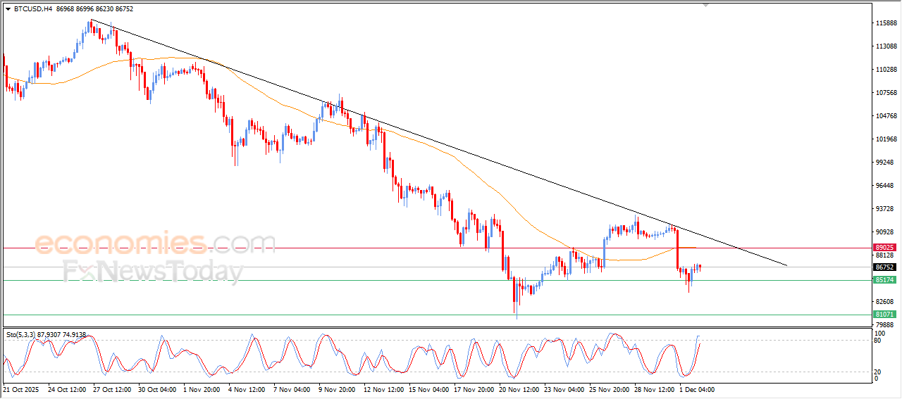 Bitcoin (BTCUSD) prices declined its last intraday trading, amid the continuation of the negative pressure due to its trading below EMA50, under the dominance of the main bearish trend on the short-term basis and its trading alongside supportive trend line for this trend, besides the reaching of relative strength indicators to the overbought levels, exaggeratedly compared to the price move, to indicate forming negative divergence.