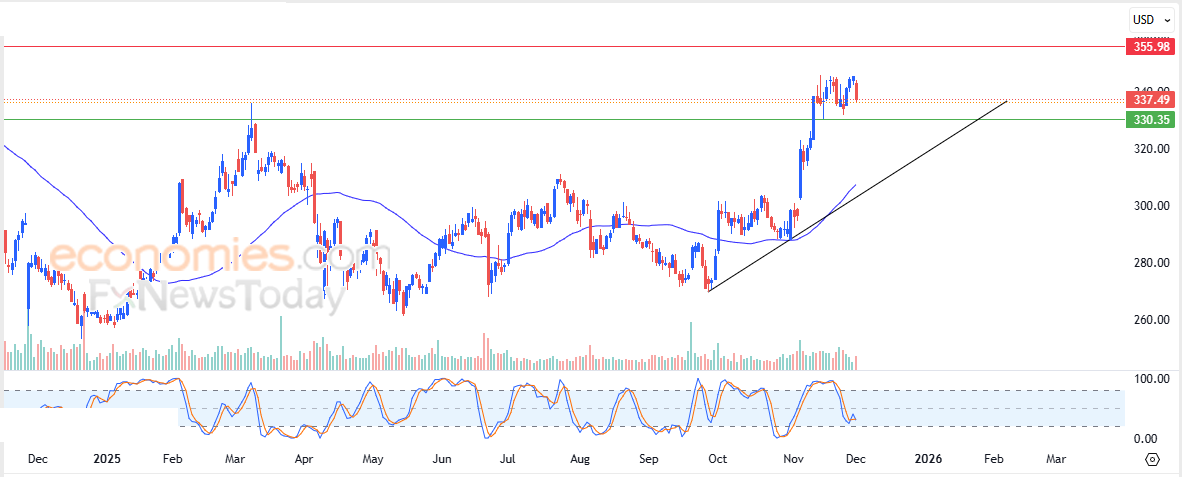 Therefore we expect the stock to rise in its upcoming trading, especially as long as it remains above the support level of $330.35, targeting the resistance level of $355.00.