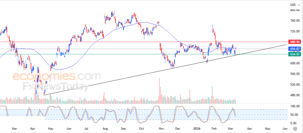 Therefore we maintain a neutral outlook for the stock’s upcoming trading sessions, as long as support at $635.00 remains intact, with the price targeting the first resistance level at $681.00.