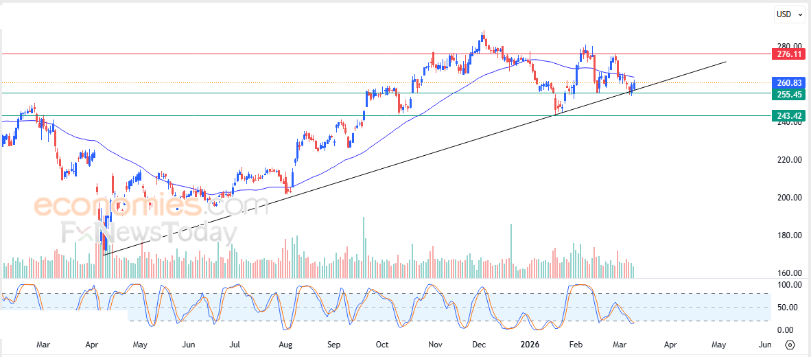 Therefore we maintain a neutral outlook for the stock’s upcoming intraday trading sessions, as long as support at $255.45 remains intact, with the price targeting the resistance level at $276.00.