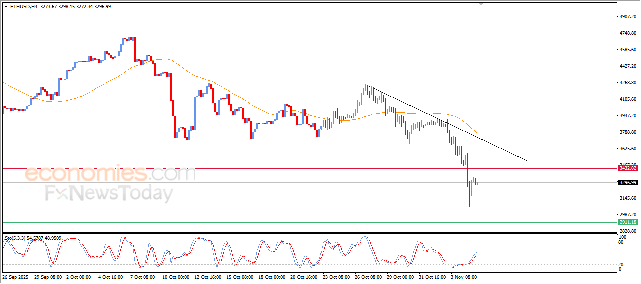 The price of (ETHUSD) begins to decline again on its last intraday levels, after offloading some of its previous losses, and it succeeded in offloading its oversold conditions on the relative strength indicators, to reach exaggerated overbought levels, indicating losing the bullish momentum, amid the continuation of the negative pressure that comes from its trading below EMA50, which reduces the chances of the recovery on the short-term basis, with its trading alongside minor bearish trendline on the short-term basis.