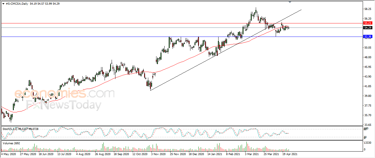 Comcast's stock fell 0.13% in the last session after touching the resistance of the 50-day SMA, amid the dominance of the downward correctional short-term wave, while hurt by piercing the upside trend line recently, as it also suffered from negative signals from the RSI.