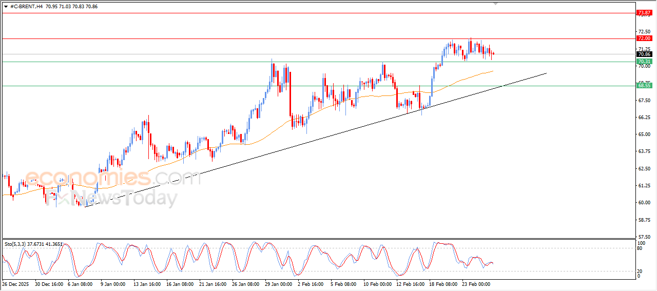 Brent prices witnessed mixed moves on their last intraday levels, to complete its sideways range move in the previous period, as attempt to gather its positive strength that might help it to keep the main bullish trend on short-term basis, with its trading alongside trend line, taking advantage of its trading above EMA50, which provides renewed bullish momentum, on the other hand, we notice the emergence of negative overlapping signals from relative strength indicators, after offloading its oversold conditions.