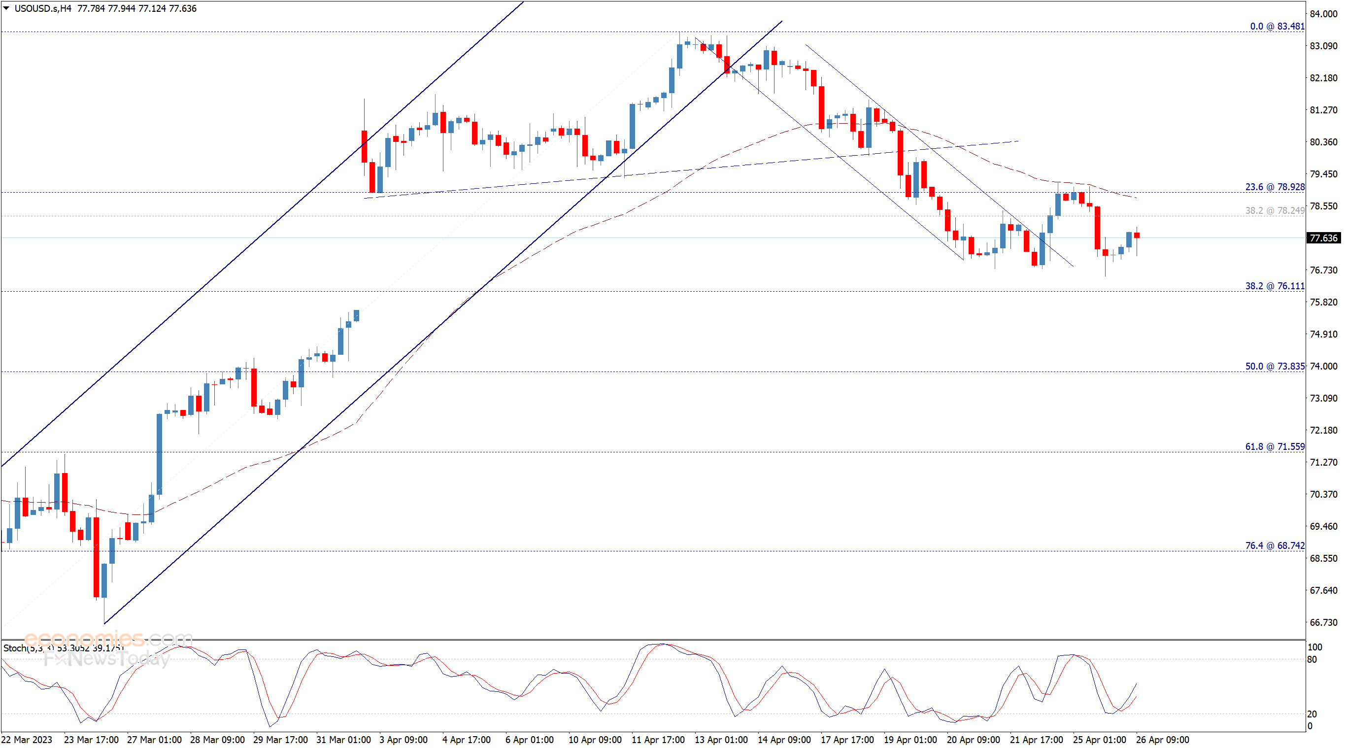 Crude oil prices fluctuate within tight sideways track since morning, noticing that stochastic begins to lose the positive momentum, waiting to motivate the price to resume the expected bearish trend for today, which its targets begin at 76.10 and extend to 73.85 after breaking the previous level, taking into consideration that breaching 78.90 will stop the negative scenario and push the price to return to the main bullish track again.
