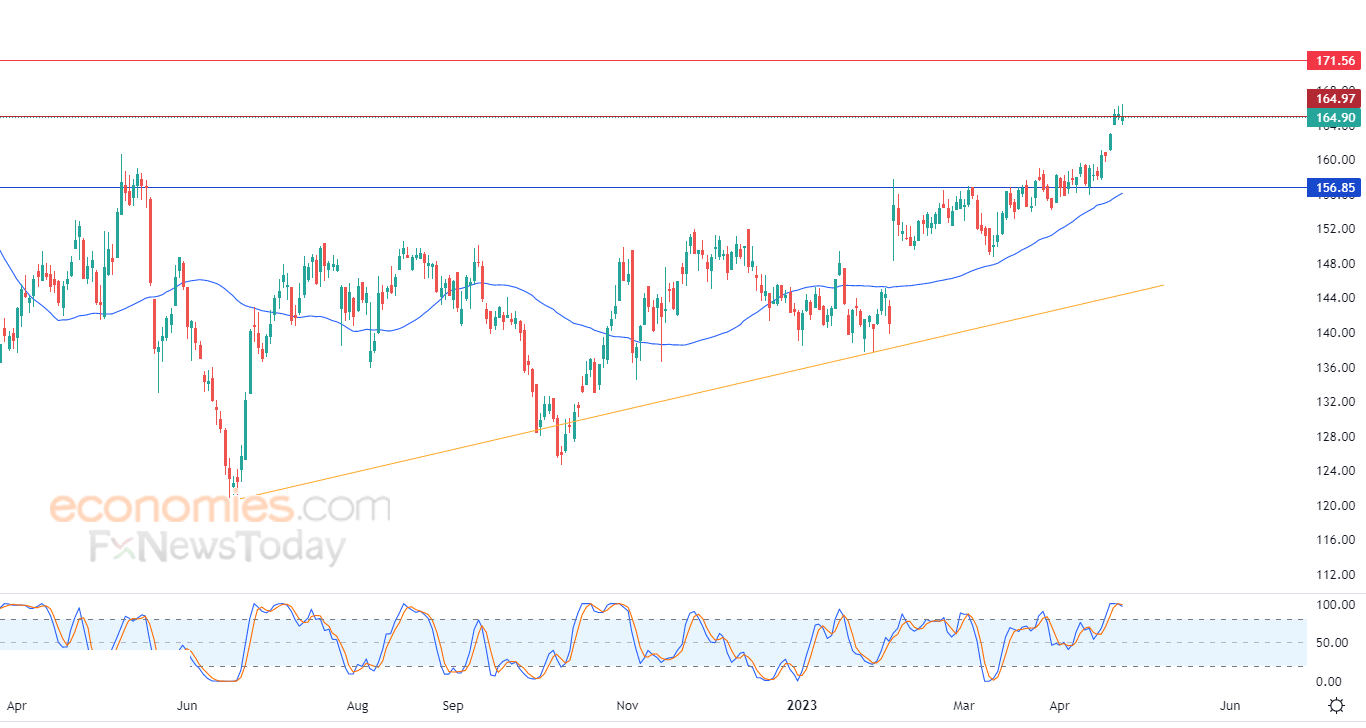 Therefore we expect the stock to rise and target the first resistance of 171.50, provided the resistance of 165.00 was breached.